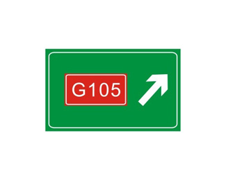 地点方向标志用于指示高速公路或城市快速路两个行驶方向,设在驶入高速公路或城市快速路的匝道分岔点处。在目的地信息之上,可增加前往高速公路的编号信息。